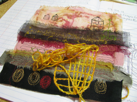 One of the new pieces I'm finishing for my upcoming solo show, natural dyed cotton and silk fabrics, machine stiched using Aurifil Cotton threads.